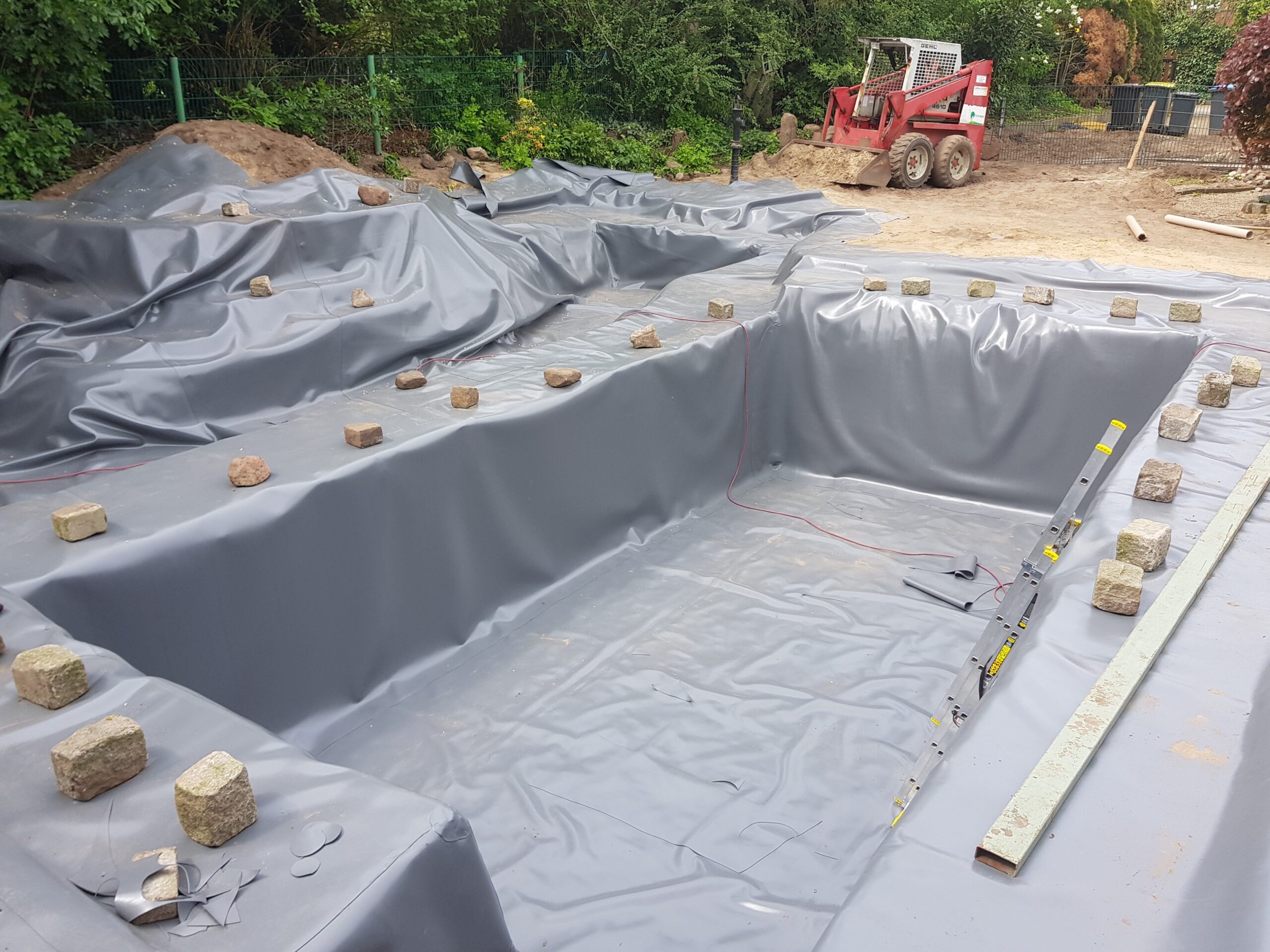 Im Jahr 2019 realisierte unser Kunde in Coesfeld, Nordrhein-Westfalen, ein beeindruckendes Schwimmteich-Selbstbauprojekt. Ursprünglich erstreckte sich auf dem Gelände eine große Rasenfläche, auf der im hinteren Teil eine Gartenhütte stand. Zwischen diesen Elementen wurde der Schwimmteich errichtet, der komplett aus dem Boden gehoben wurde. Für die Abdichtung der Folie vertraute unser Kunde auf die Spezialisten von Mielke’s Naturbadeteich. Hier wurde eine anthrazitfarbene Schwimmteichfolie professionell im Teich verschweißten.